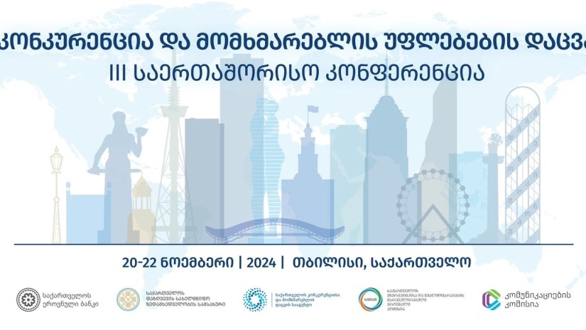 20-22 ნოემბერს, 5 მარეგულირებელი უწყების - კონკურენციისა და მომხმარებლის დაცვის სააგენტოს, სემეკის, ეროვნული ბანკის, დაზღვევის სახელმწიფო ზედამხედველობის სამსახურისა და კომუნიკაციების კომისიის ერთობლივი ორგანიზებით, კონკურენციის პოლიტიკის აღსრულების და მომხმარებლის უფლებების დაცვის შესახებ III საერთაშორისო კონფერენცია გაიმართება.