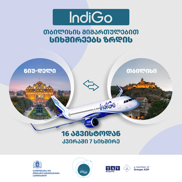 აზიის უმსხვილესი დაბალბიუჯეტიანი ავიაკომპანია IndiGo საქართველოში რეგულარული პირდაპირი ავიარეისების რაოდენობას ზრდის.