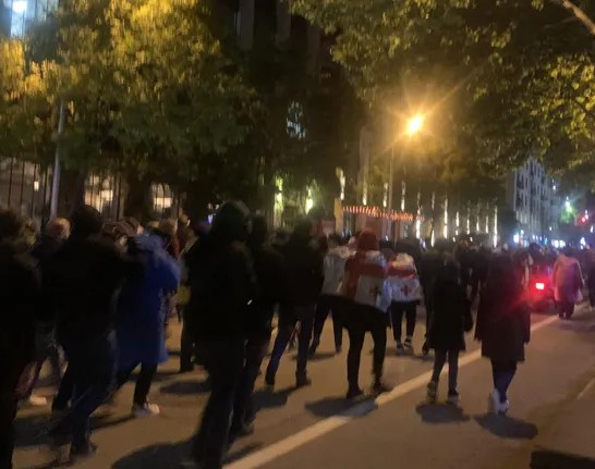 პარლამენტთან მიმდებარე აქციის მონაწილეების ნაწილი გმირთა მოედნისკენ მიემართება.