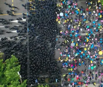 სამართალდამცველები, რომელთაც პარლამენტის მიმდებარე ტერიტორია სრულად ჰქონდათ დაკავებული ტერიტორიას უკუსვლით ტოვებენ.