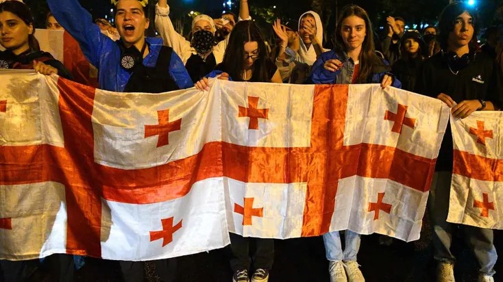 "უცხოური გავლენის გამჭვირვალობის" შესახებ კანონპროექტის წინააღმდეგ დედაქალაქის მასშტაბით მიმდინარე აქციების მონაწილეების ნაწილი მსვლელობით თბილისის მერიასთან მივიდა.