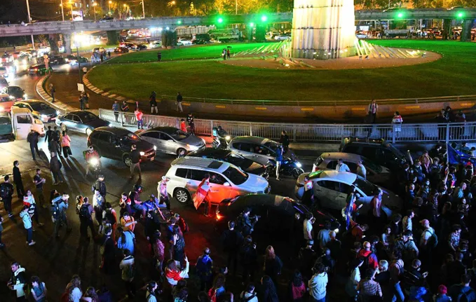 პარლამენტთან მიმდინარე აქციის მონაწილეები მსვლელობით გმირთა მოდენაზე მყოფ აქციის მონაწილეებს შეუერთდნენ. სრულად პარალიზებულია გმირთა მოედანი.