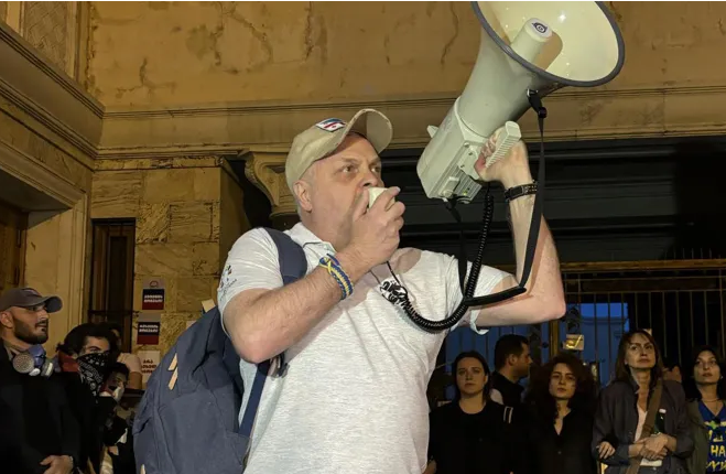 “ნაციონალური მოძრაობის” წევრის, გია ბარამიძე მიმართავს ხელისუფლებას, რომ პარლამენტის შენობის უკანა მხარეს, სადაც მოქალაქეები აქციას მართავენ, უსაფრთხოების მიზნით პოლიცია დააყენოს.