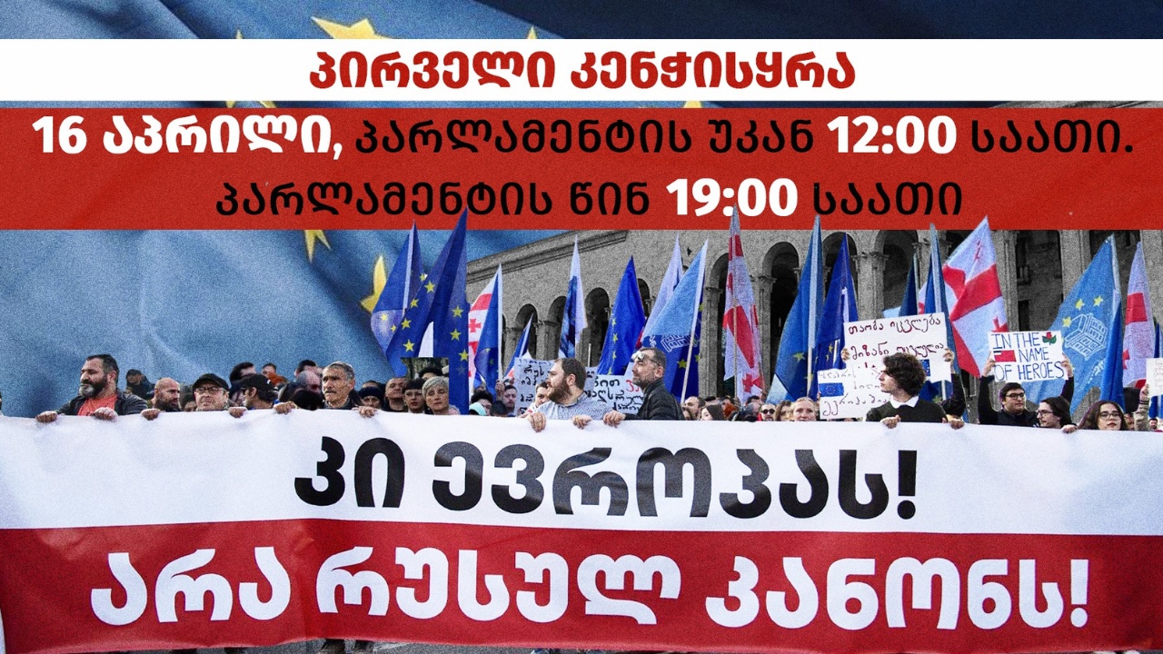 რუსული კანონის წინააღმდეგ დღეს, 16 აპრილს პარლამენტთან ორი აქცია გაიმართება. პირველი, პარლამენტის უკან 12:00 საათზე – პლენარული სხდომის დროს, სადაც, სავარაუდოდ კანონპროექტს პირველი მოსმენით განიხილავენ, ხოლო მეორე – 19:00 საათზე, პარლამენტის წინ.