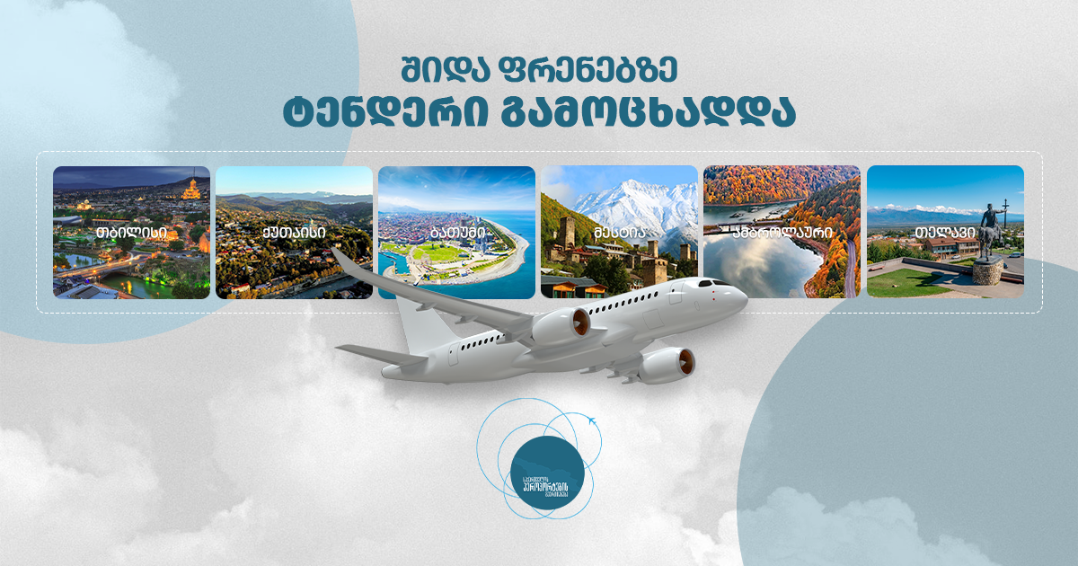 საქართველოს აეროპორტების გაერთიანებამ,მთავრობის განკარგულების საფუძველზე, საქართველოს სამოქალაქო აეროპორტებში მგზავრთა გადაყვანისა და ტურიზმის ხელშეწყობის მიზნით ავიარეისების ორგანიზებასთან დაკავშირებით ტენდერი გამოაცხადა.