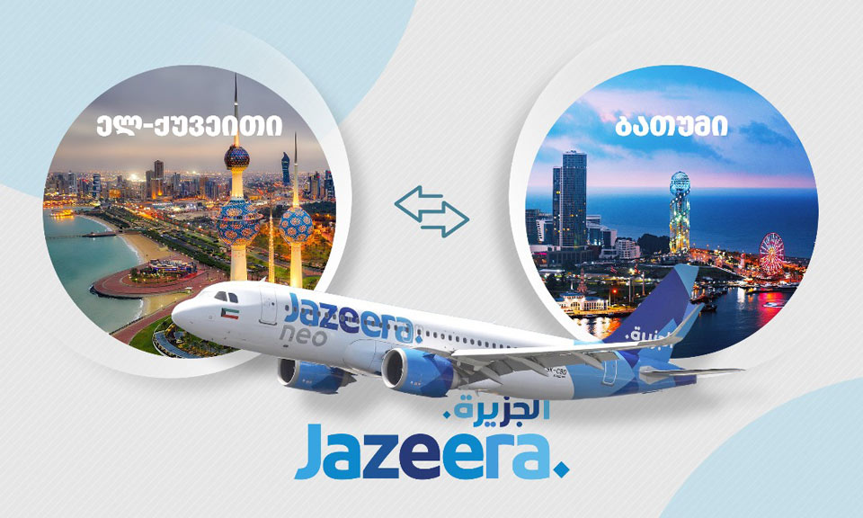ქუვეითური დაბალბიუჯეტური ავიაკომპანია Jazeera Airways 14 ივნისიდან ელ - ქუვეითიდან ბათუმის მიმართულებით ოპერირებას იწყებს.