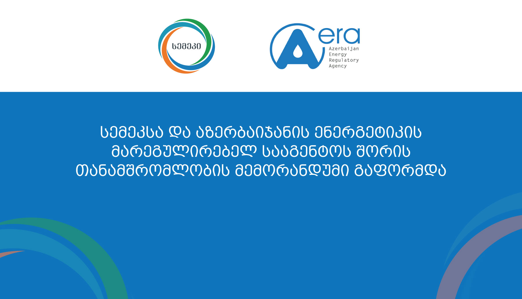 საქართველოს ენერგეტიკისა და წყალმომარაგების მარეგულირებელ ეროვნულ კომისიასა (სემეკ) და აზერბაიჯანის ენერგეტიკის მარეგულირებელ სააგენტოს შორის თანამშრომლობის მემორანდუმი გაფორმდა.