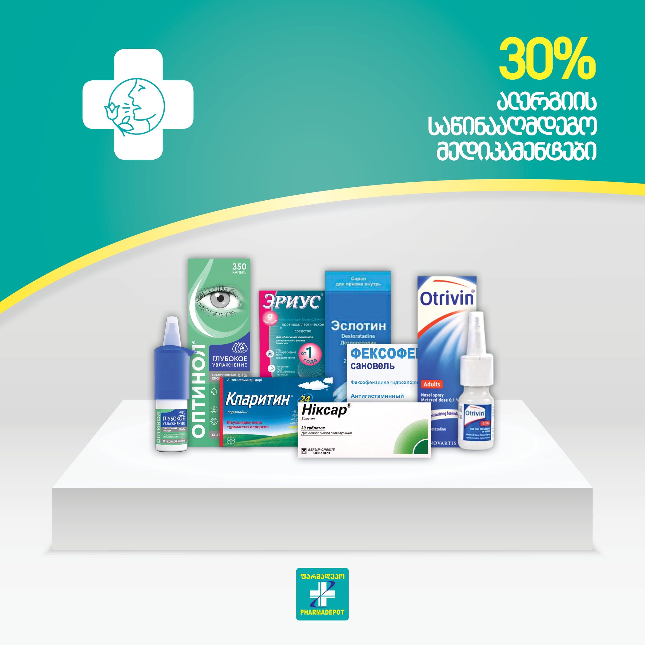 სააფთიაქო ქსელი „ფარმადეპო“ მომხმარებლებს ალერგიის საწინააღმდეგო მედიკამენტებზე 30%–იან ფასდაკლებას სთავაზობს. ამის შესახებ საინფორმაციო სააგენტო BUSINESS TIMS-ს „ფარმადეპო“–დან აცნობეს.