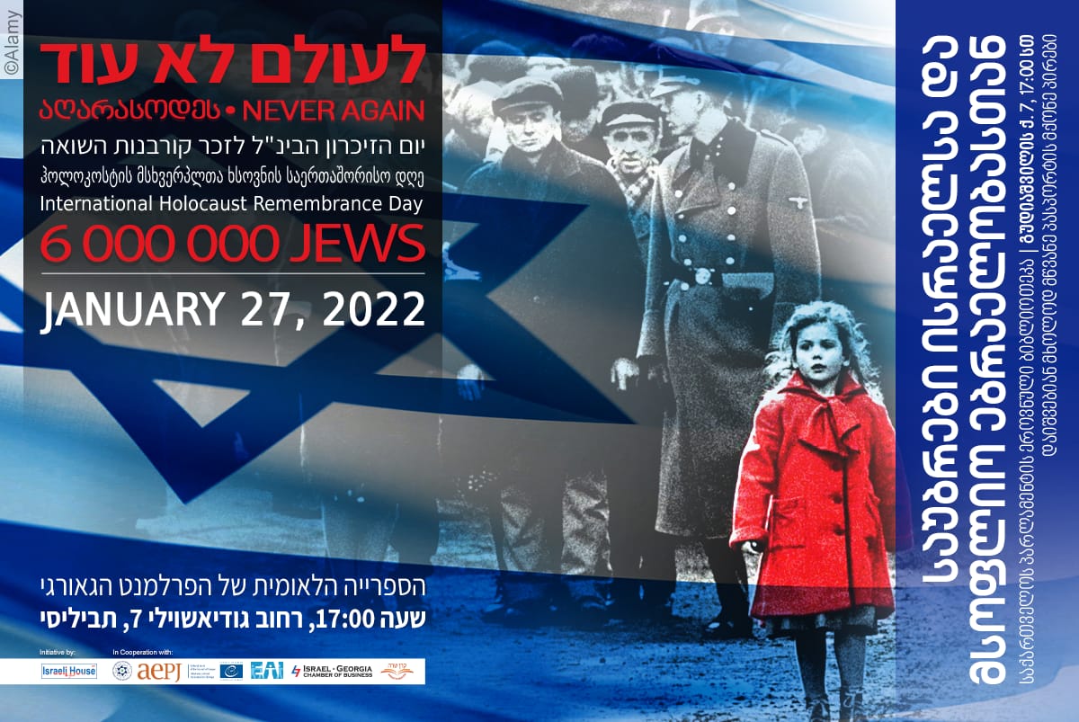 ხვალ, 27 იანვარს, 17.00 საათზე საქართველოს პარლამენტის ეროვნული ბიბლიოთეკის საგამოფენო დარბაზში გაიმართება „ისრაელის სახლის“ მიერ ორგანიზებული ჰოლოკოსტის მსხვერპლთა ხსოვნის საერთაშორისო დღისადმი მიძღვნილი ღონისძიება.