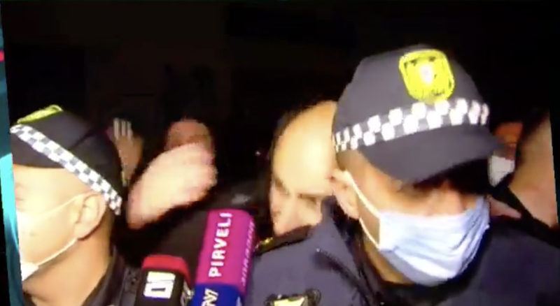 თბილისის მერობის კანდიდატ ნიკა მელიას ვაზისუბნის 62-ე საარჩევნო უბანთან ფიზიკურად გაუსწორდნენ.