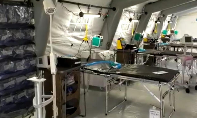 დიღომში, ოლიმპიური სოფლის ერთ-ერთ სპორტულ დარბაზში საველე ჰოსპიტალის მოწყობა მიმდინარეობს.