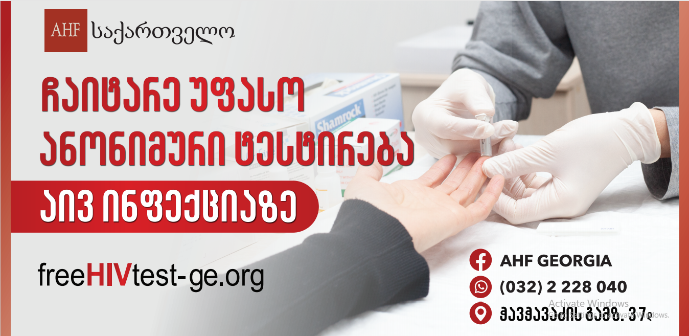 შიდსის ჯანდაცვის ფონდის (AHF) საქართველოს წარმომადგენლობის ტესტირების ცენტრი მოქალაქეთა მომსახურებას შეუფერხებლად ახორციელებს.