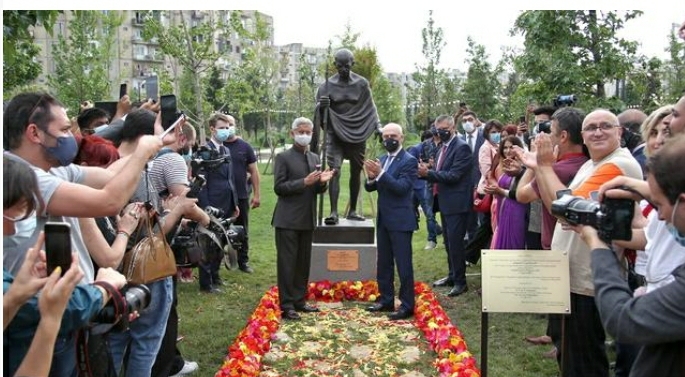 ინდოეთის საგარეო საქმეთა მინისტრი საქართველოში ვიზიტის ფარგლებში, თბილისში ინდოეთის ეროვნულ-განმათავისუფლებელი და არაძალადობრივი მოძრაობის ლიდერის, სახელმწიფო მოღვაწის, მაჰათმა განდის ძეგლი გაიხსნა, რაც განდის 150 წლის იუბილეს ეძღვნება.