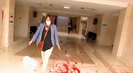 მოძრაობა დროას დამფუძნებელმა ელენე ხოშტარიამ მთავრობის ადმინისტრაციის შენობას წითელი საღებავი შეასხა.